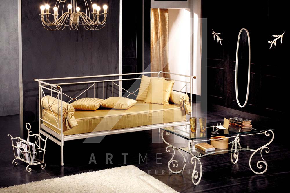 Καναπές κρεβάτι από μασίφ σφυρήλατο σίδερο. Μεταλλικό κρεβάτι επισκέπτη για την διακόσμηση του σπιτιού σας με την τεχνογνωσία και την εγγύηση της Αρτ Μετάλ.