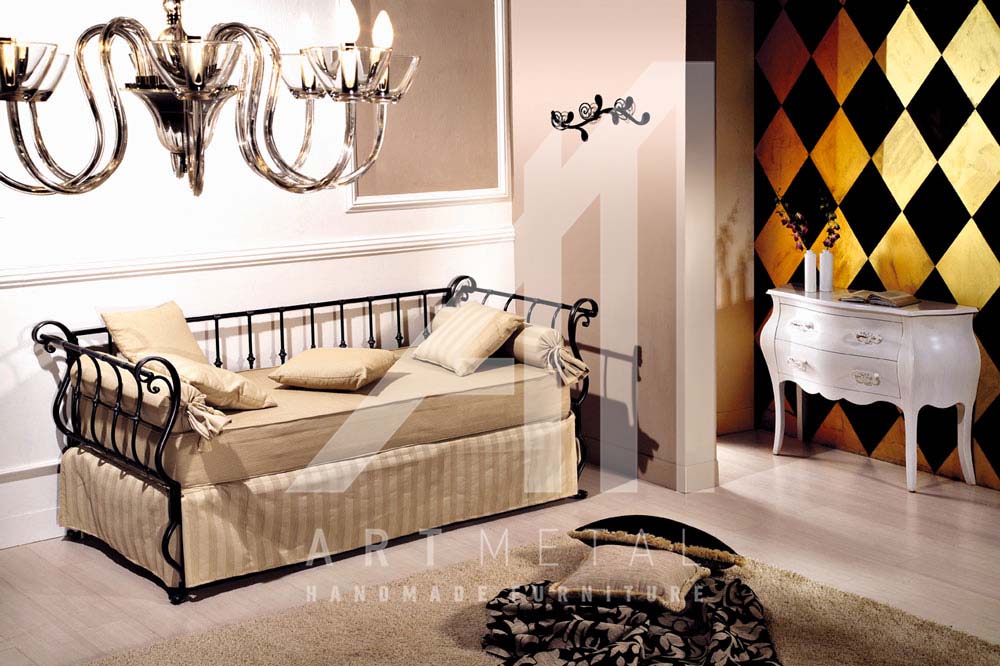 Καναπές κρεβάτι από μασίφ σφυρήλατο σίδερο. Μεταλλικό κρεβάτι επισκέπτη για την διακόσμηση του σπιτιού σας με την τεχνογνωσία και την εγγύηση της Αρτ Μετάλ.