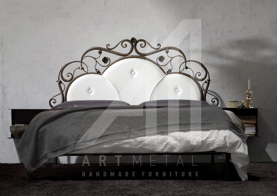 Χειροποίητο σιδερένιο κρεβάτι υψηλής αισθητικής με τεχνόδερμα και ύφασμα για το υπνοδωμάτιό σας από την ART METAL.