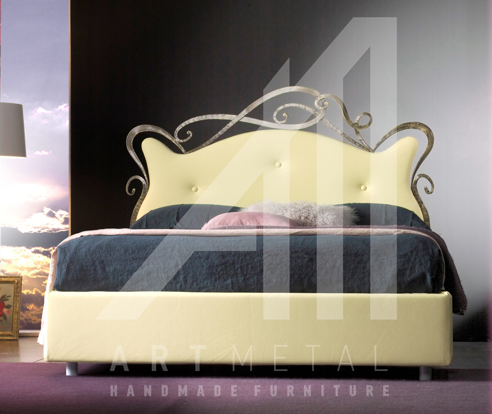 Μεταλλικό κρεβάτι με καπιτονέ κεφαλάρι από δερματίνη. Χειροποίητο σιδερένιο κρεβάτι με τεχνόδερμα και ύφασμα για το υπνοδωμάτιό σας από την ART METAL.