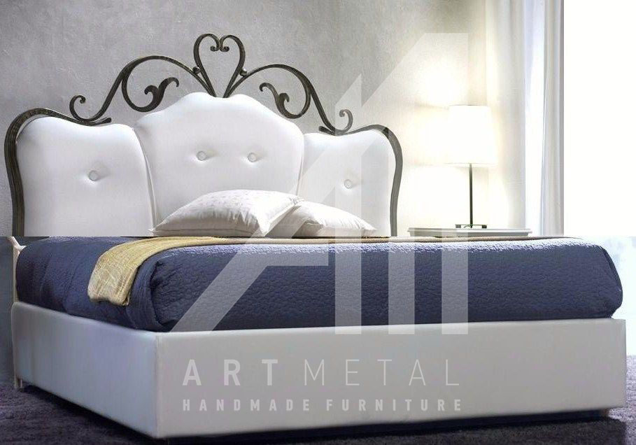 Μεταλλικό κρεβάτι με καπιτονέ κεφαλάρι από δερματίνη 3013-017. Χειροποίητο σιδερένιο κρεβάτι με τεχνόδερμα και ύφασμα για το υπνοδωμάτιό σας από την ART METAL.