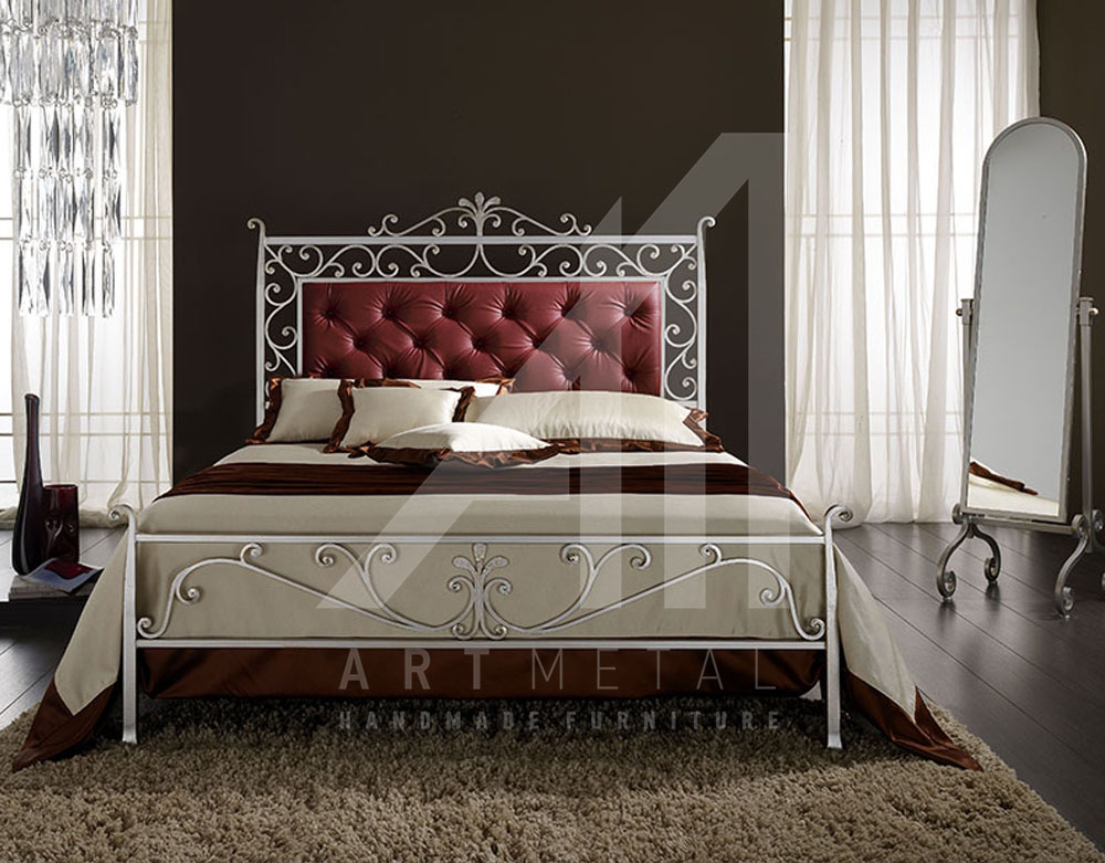 Μεταλλικό κρεβάτι με καπιτονέ κεφαλάρι από δερματίνη 3013-019. Χειροποίητο σιδερένιο κρεβάτι με τεχνόδερμα και ύφασμα για το υπνοδωμάτιό σας από την ART METAL.