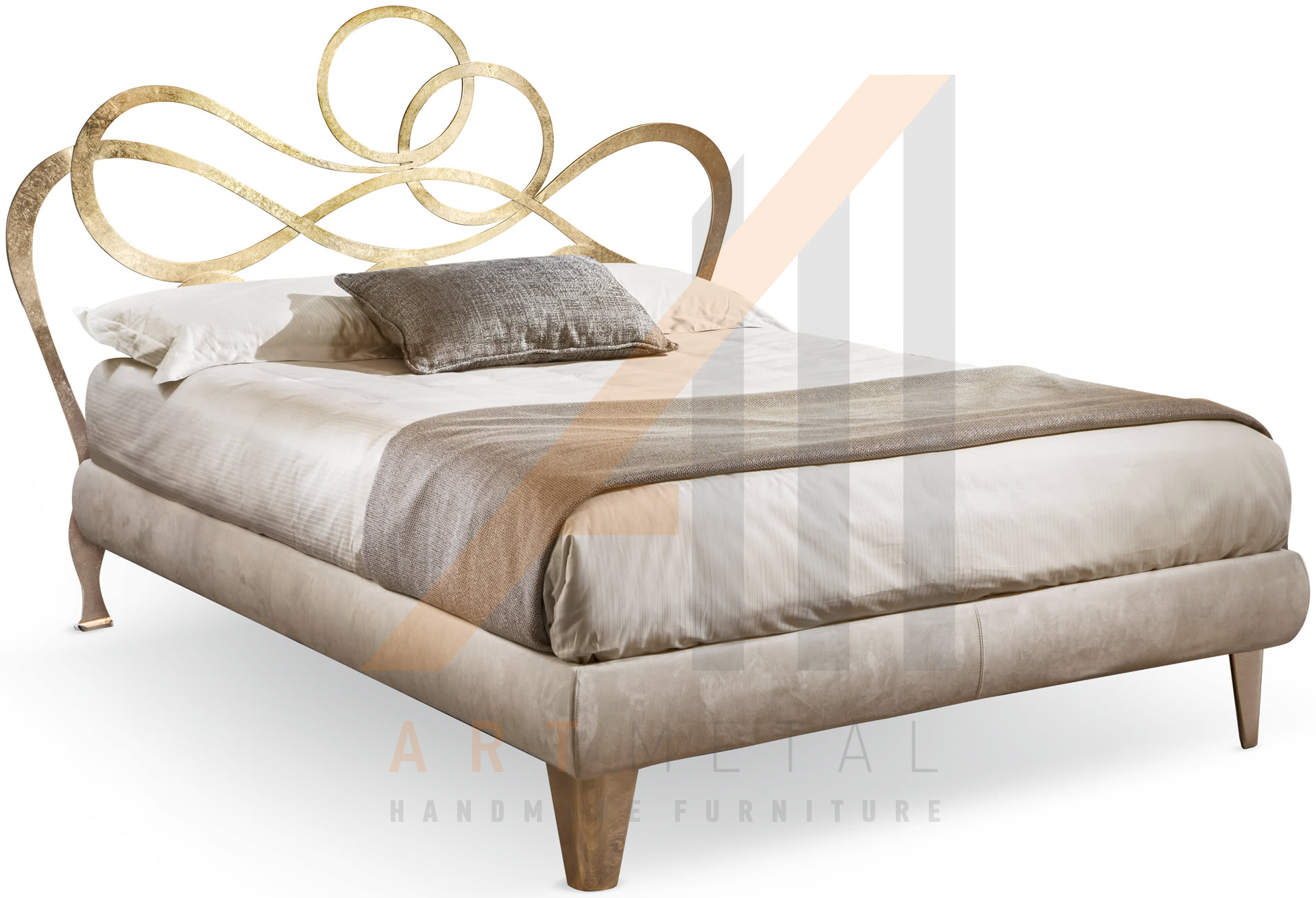 Ντυμένο κρεβάτι με μεταλλικό κεφαλάρι 3013-025. Χειροποίητο σιδερένιο κρεβάτι με τεχνόδερμα και ύφασμα για το υπνοδωμάτιό σας από την ART METAL.