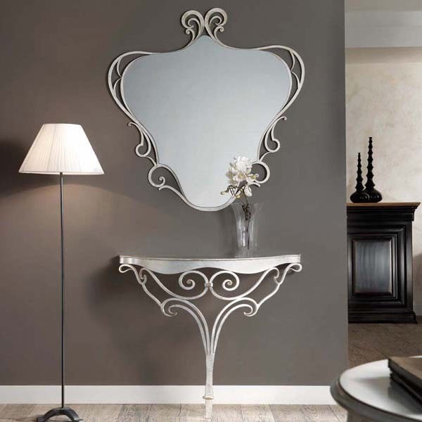 Μεταλλική κονσόλα 3025-001. Κονσόλα εισόδου από μασίφ σίδερο με γυάλινο καπάκι και καθρέπτη. Στην Art Metal θα βρείτε χειροποίητες μεταλλικές κονσόλες εισόδου σε μοντέρνα και παραδοσιακά σχέδια για την διακόσμηση του σπιτιού σας.