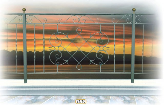 Όλα τα κάγκελα μπαλκονιών 21-10 κατασκευάζονται στις διαστάσεις που επιθυμείτε και βάφονται στο χρώμα της επιλογής σας με ηλεκτροστατική βαφή. Για την προστασία των κάγκελων της βεράντας σας από την σκουριά, διατίθεται ψυχρό και εν θερμώ γαλβάνισμα.
