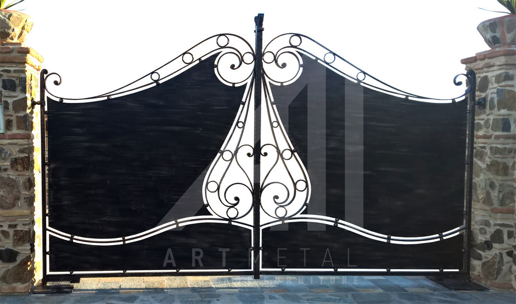 Μεταλλικές πόρτες ανοιγόμενες και συρόμενες από σφυρήλατο σίδερο μασίφ. Αυλόπορτες διακοσμημένες με στοιχεία μοτίφ και παραστάσεις σιδήρου. Καγκελόπορτες σε παραδοσιακή και μοντέρνα γραμμή για το σπίτι και την επιχείρησή σας από την Art Metal.
