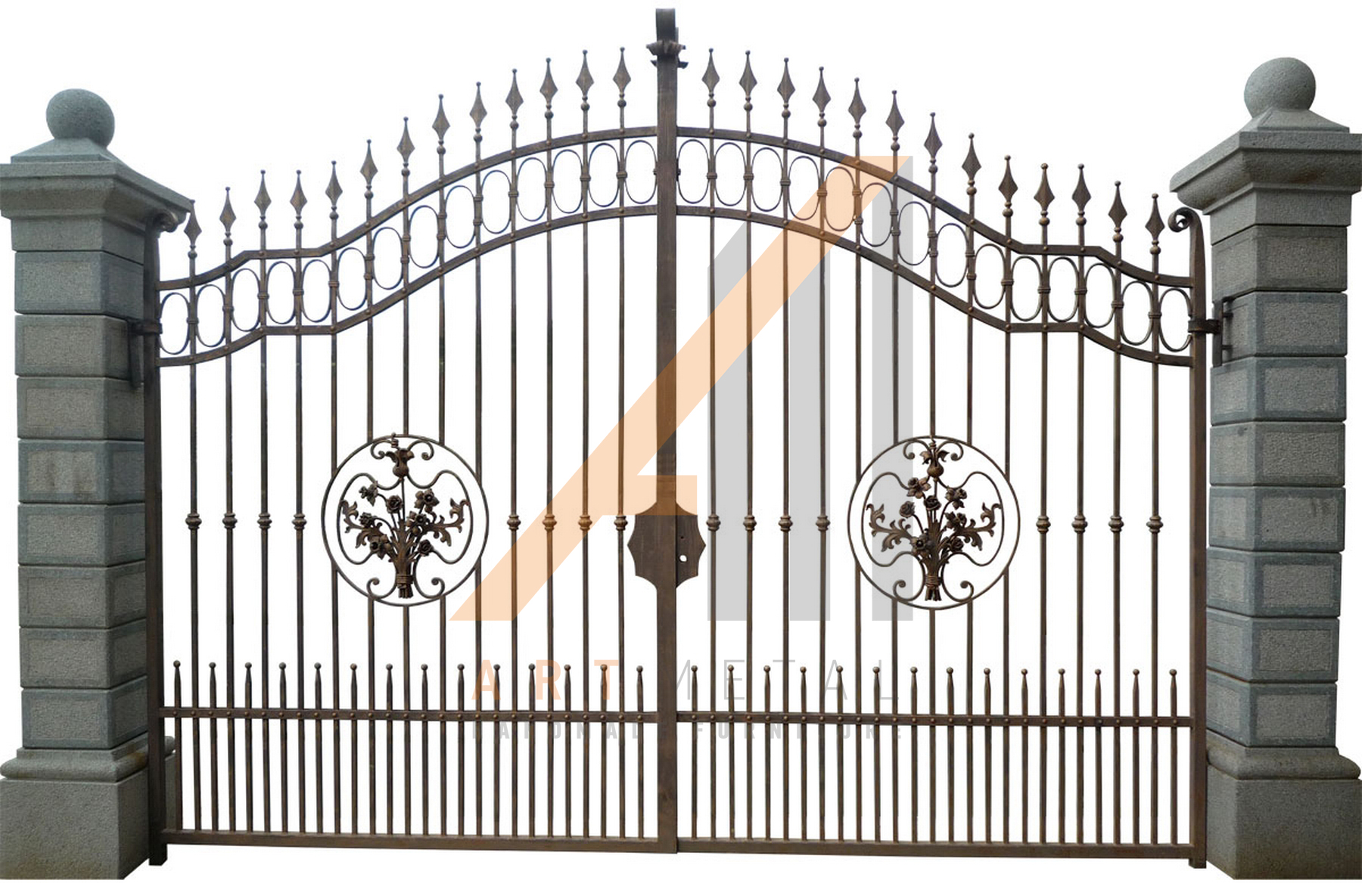 Μεταλλικές πόρτες ανοιγόμενες και συρόμενες από σφυρήλατο σίδερο μασίφ. Αυλόπορτες σιδήρου διακοσμημένες με στοιχεία μοτίφ και παραστάσεις σιδήρου. Καγκελόπορτες σε παραδοσιακή και μοντέρνα γραμμή για το σπίτι και την επιχείρησή σας από την Art Metal.